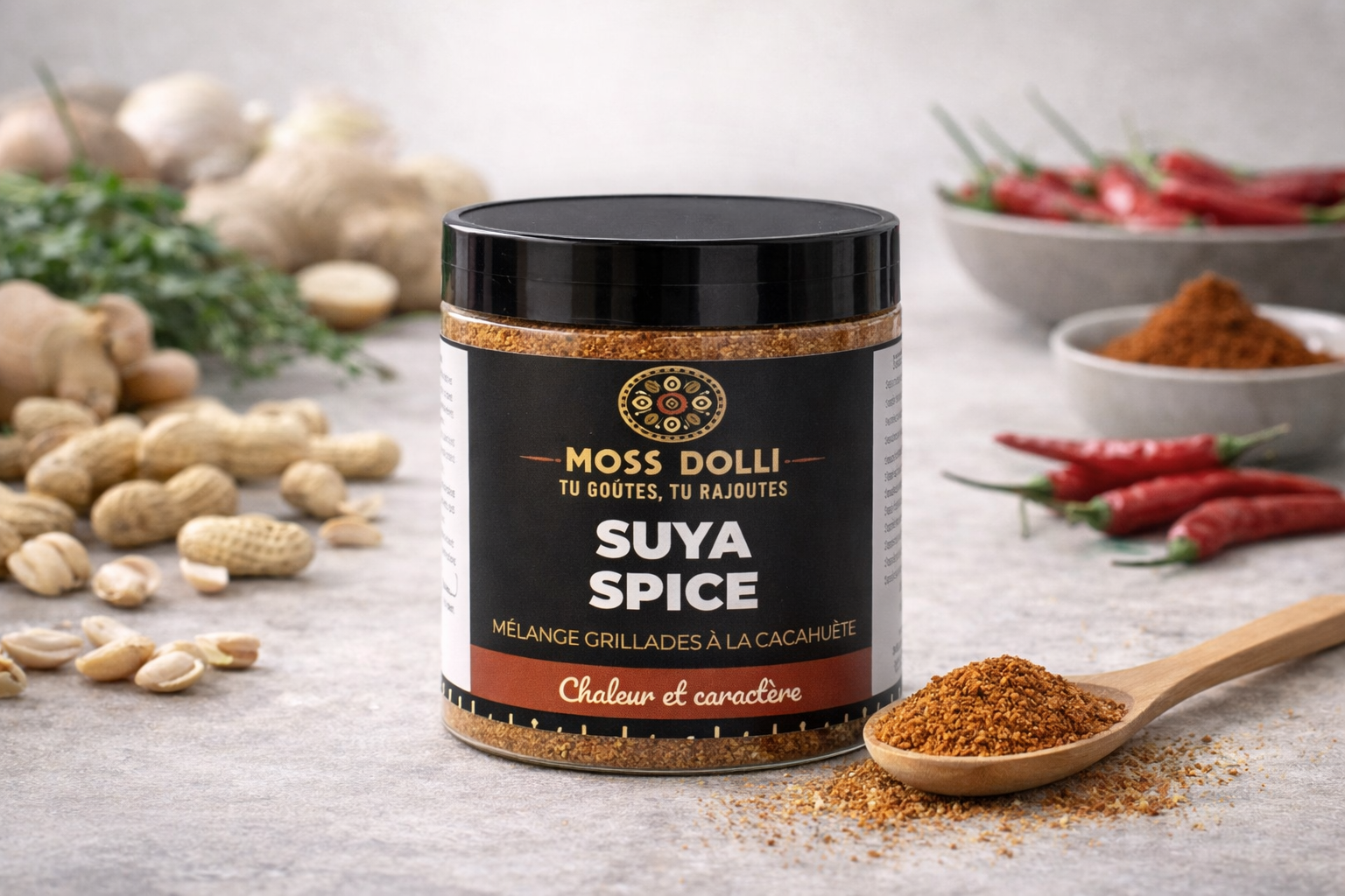 Le Suya Spice Moss Dolli est un mélange traditionnel d’Afrique de l’Ouest inspiré des célèbres brochettes africaines. Riche en saveurs et légèrement pimenté, son goût fumé apporte une saveur unique à vos viandes et légumes.